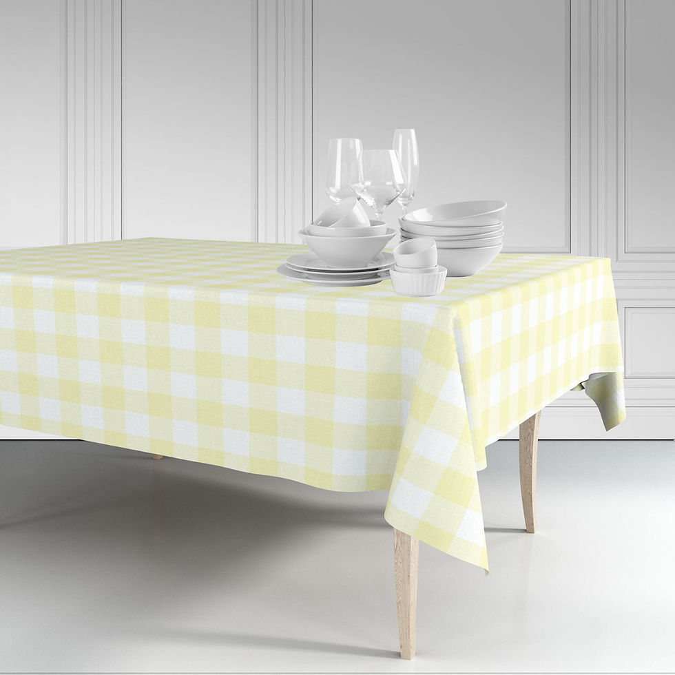 Toalha de Mesa em tecido microfibra ou linho sintético.